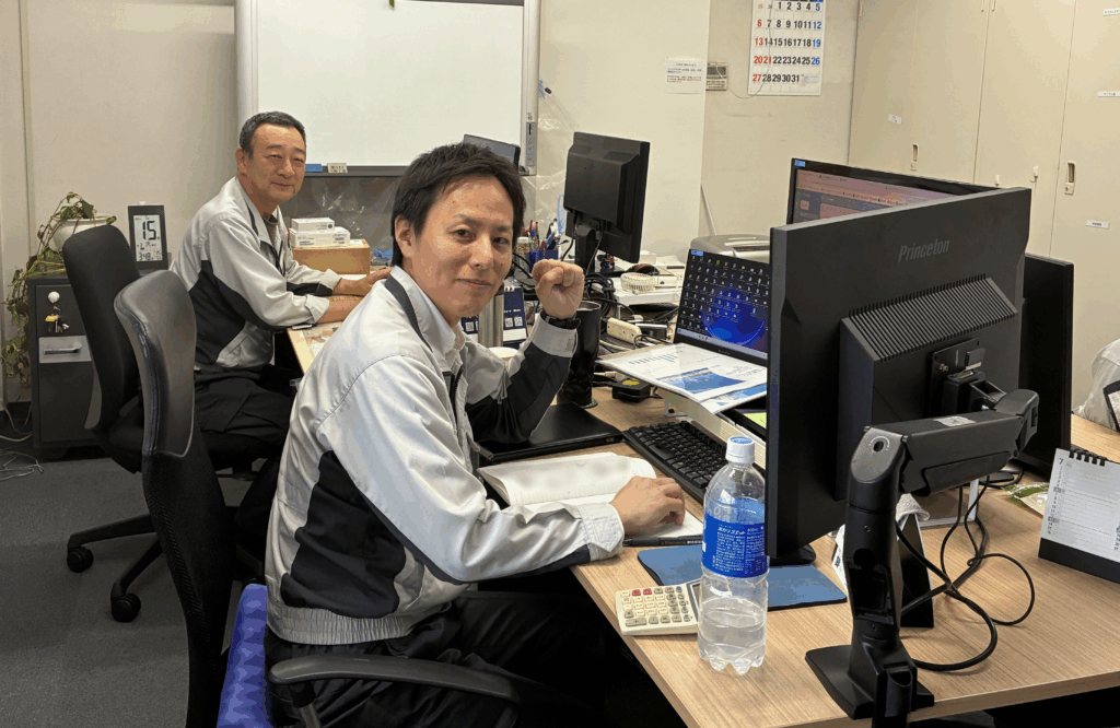 手前は営業のO社員。(人生の夢を1つ叶えた社員です。その夢とは家族での豪華客船の旅です🛳️素敵ですね✨)