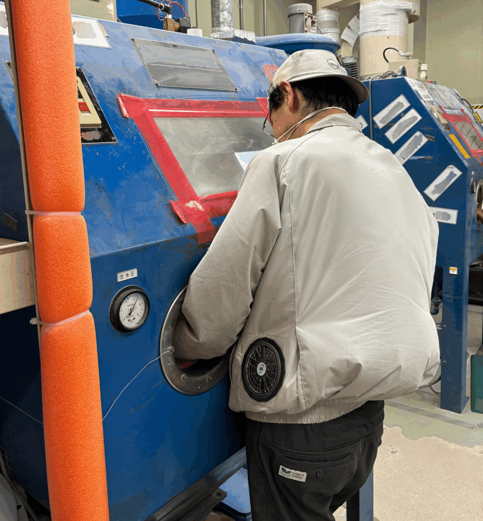 ここ長崎精密工場での主な業務は半導体製造装置部品の精密洗浄で、ステンレスやアルミなどに付着しているDepo(汚れ)を酸、アルカリを使用して除去し、その後、ブラストや外注先での表面処理を行い、クリーンルームで清浄な状態に処理をしてお客様にお返しさせていただいています。